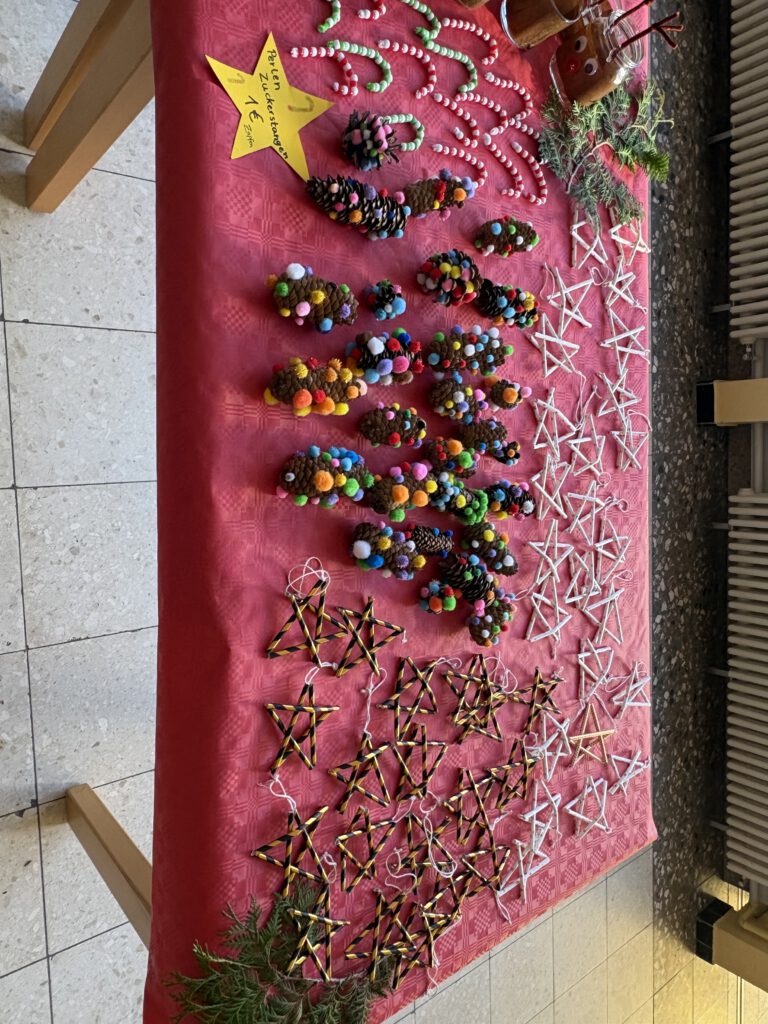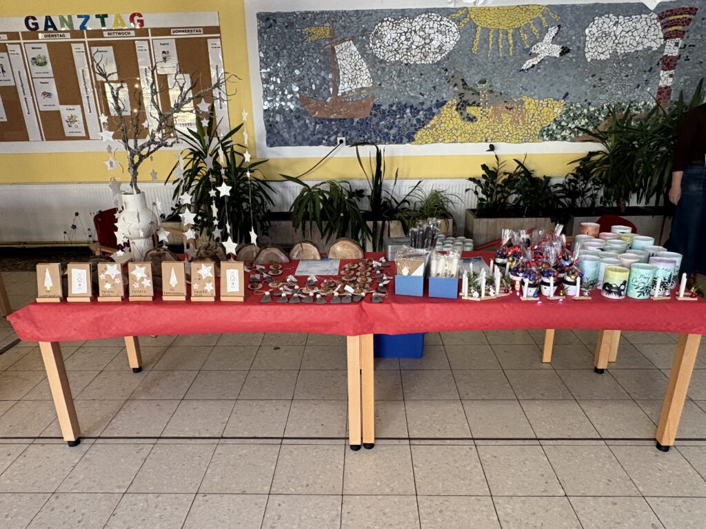 Auch die Klassen der Schule hatten im Vorfeld fleißig gebastelt und ihre selbst hergestellten Produkte an eigenen Ständen verkauft. Von winterlichen Dekorationen über kleine Geschenkideen bis zu kunstvollen Basteleien war alles dabei. Die Vielfalt und Kreativität der Kinder wurde von den Gästen sehr gelobt.