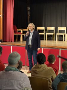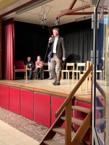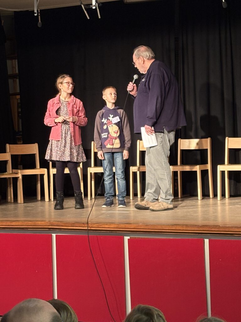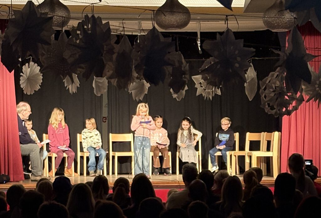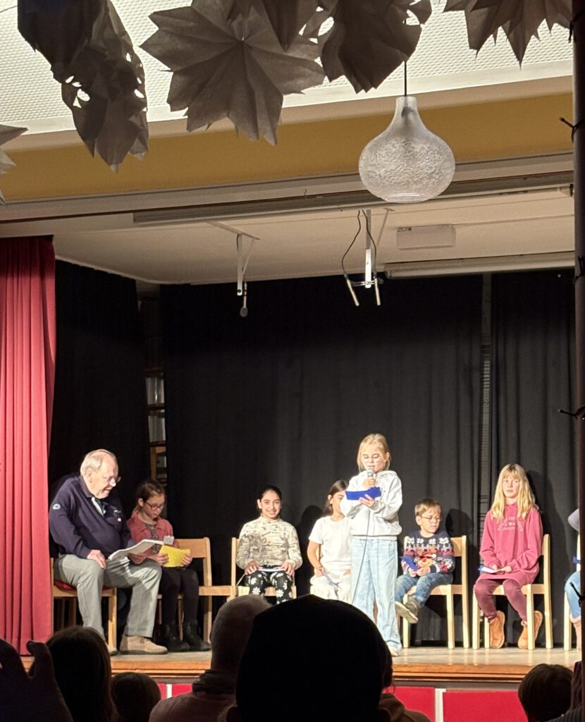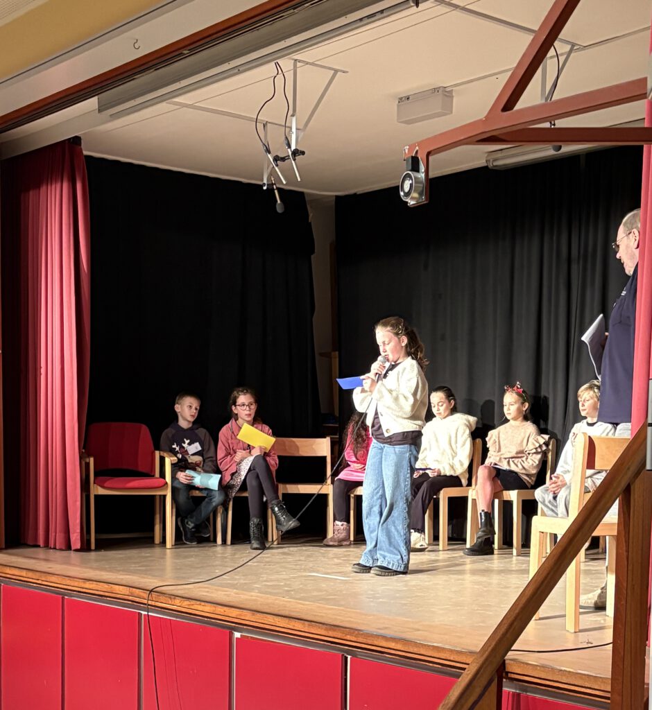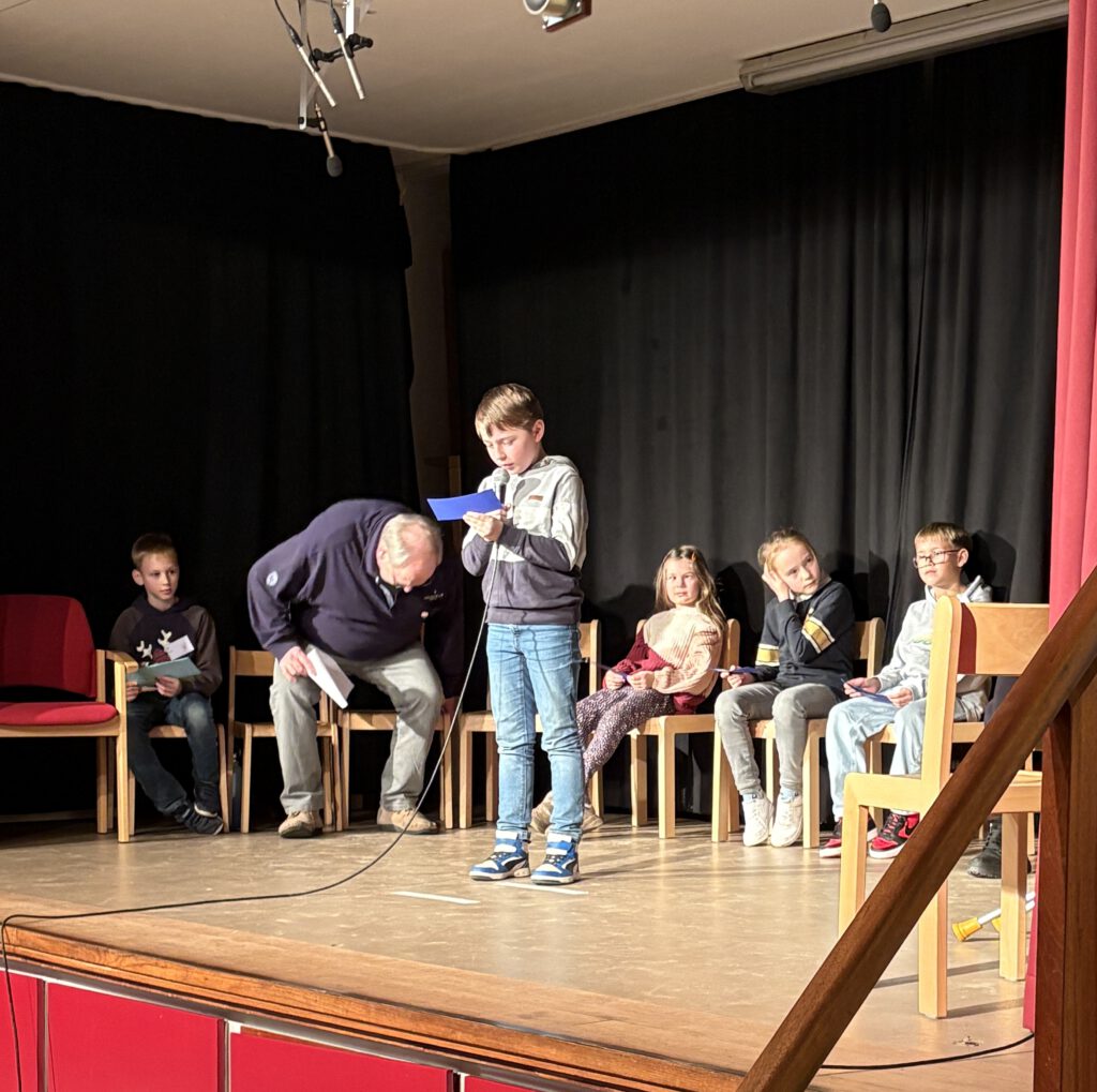 Durch das abwechslungsreiche Programm führten Phil und Karla gemeinsam mit Alfred Büngen. Einzelne Kinder stellten ihre Texte aus dem Buch vor und gaben dem Publikum eindrucksvolle Einblicke in ihre Gedanken, Erlebnisse und Perspektiven auf ihr Dorf. Besonders beeindruckend waren auch Beiträge, die sich mit nachdenklichen Themen auseinandersetzten und wirkliche Wünsche der Kinder klar formulierten.