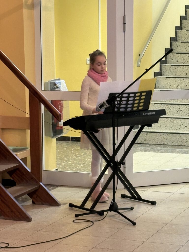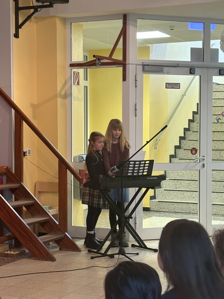 Musikalische Beiträge rundeten das Programm ab: Juna und Ivesa begleiteten „Jingle Bells“ am Keyboard, während Isabelle mit „In der Weihnachtsbäckerei“ für fröhliche Mitsingstimmung sorgte.