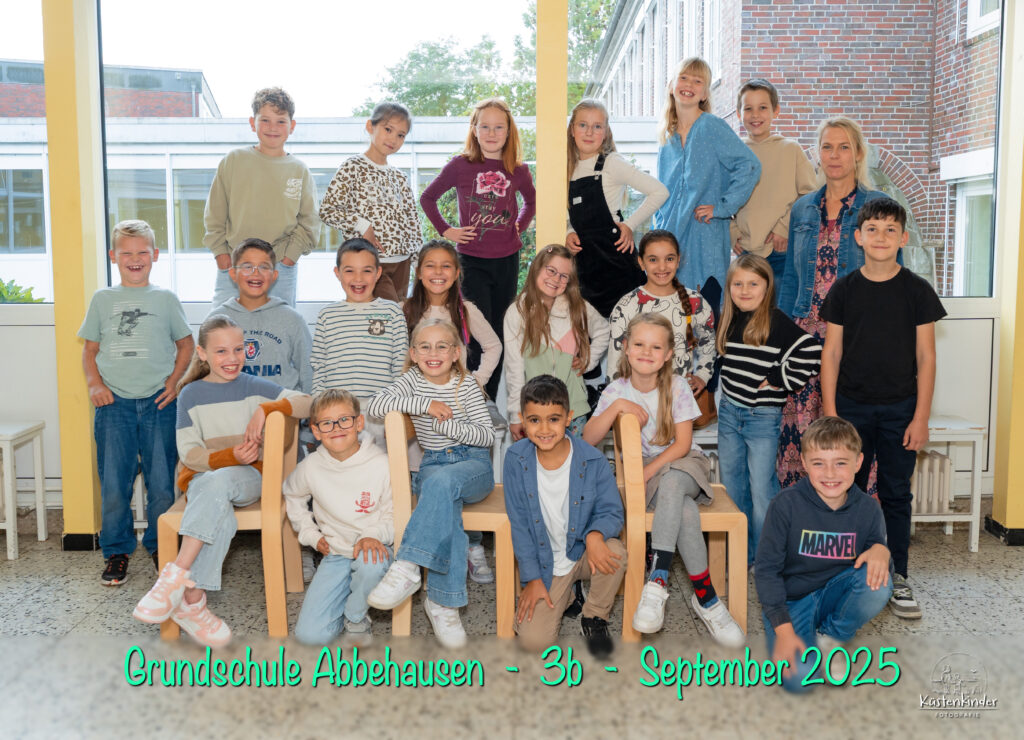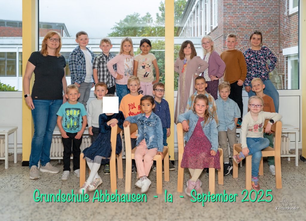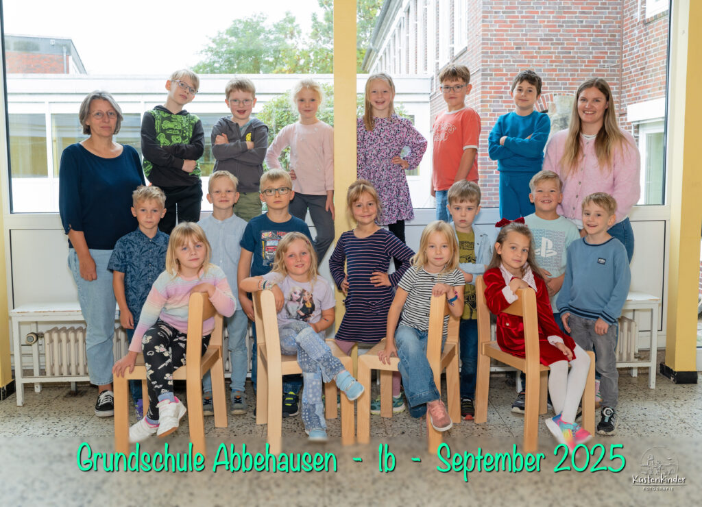 Klasse 1b mit Lorina Stüdemann und Astrid Bremermann (Schulbegleiterin)