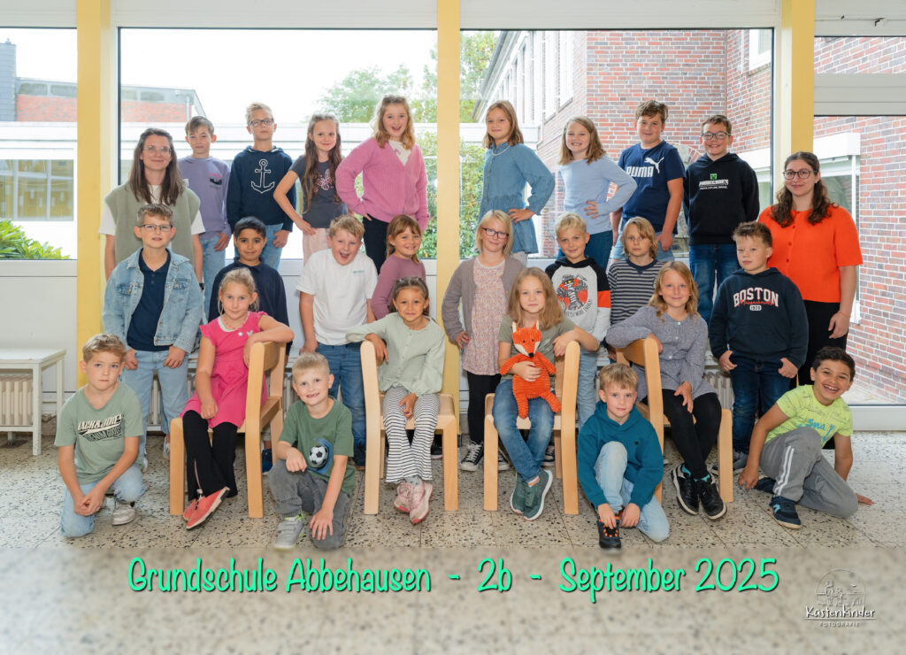 Klasse 2b mit Louise Baumann und Enola Beimborn (Referendarin)